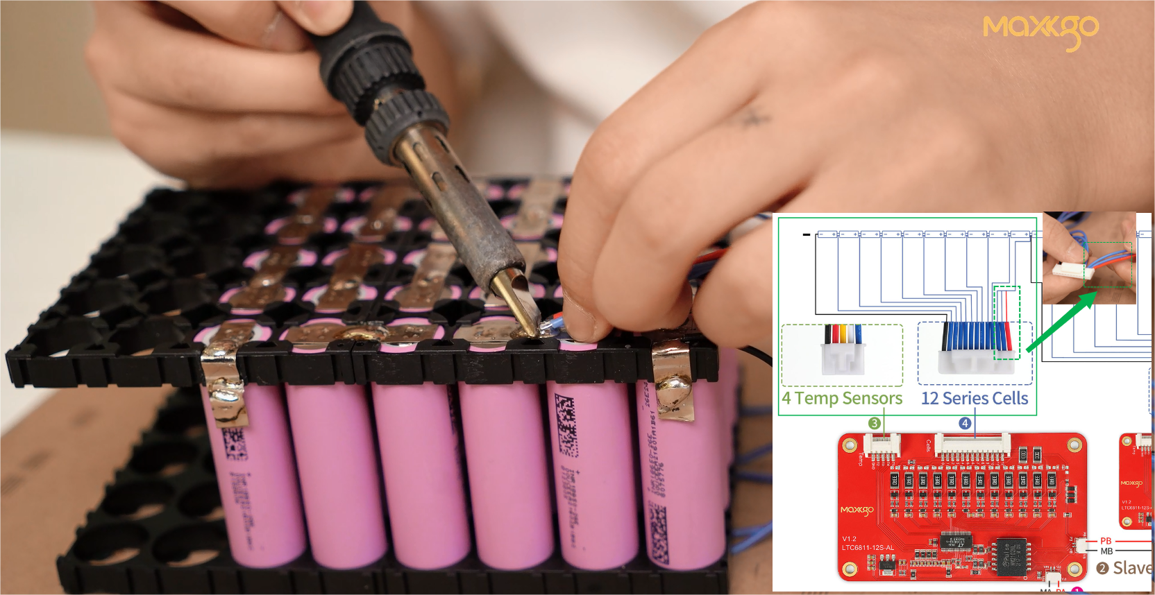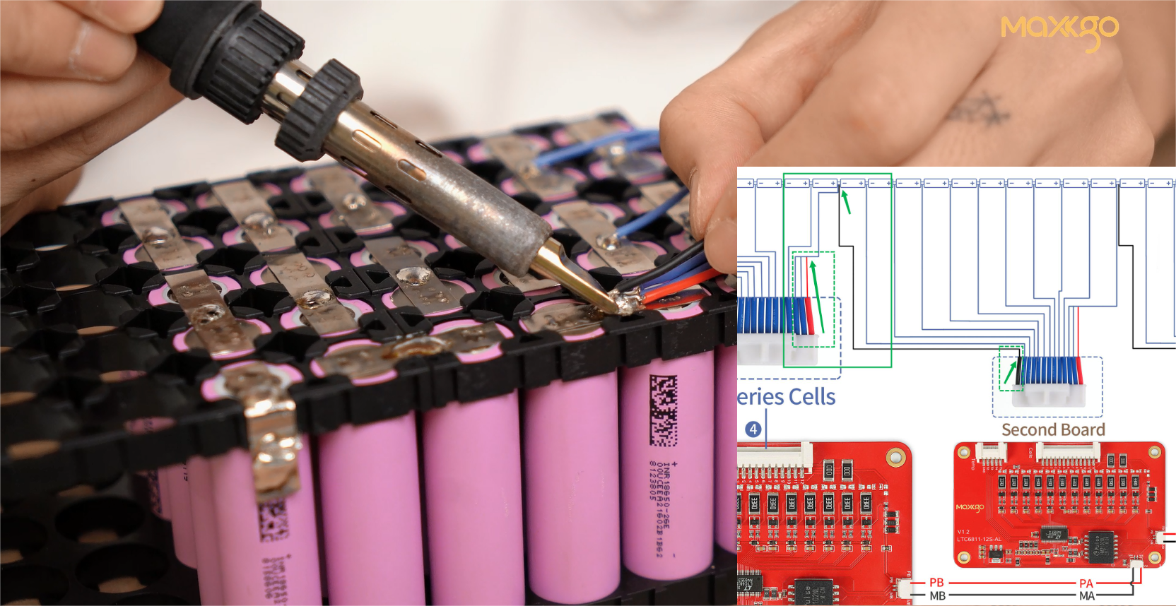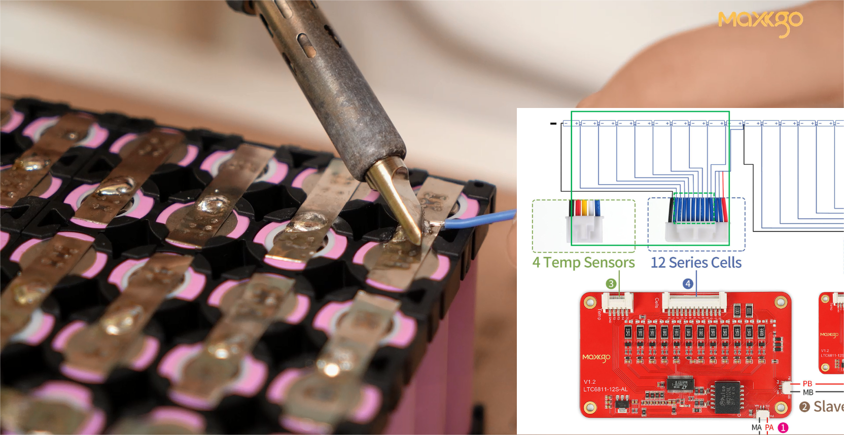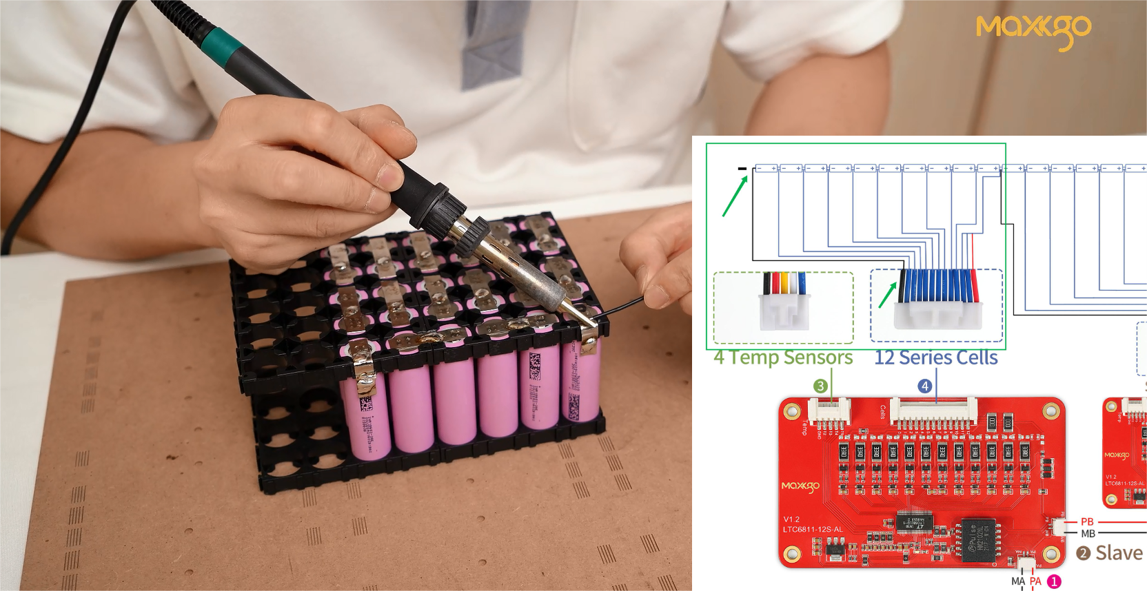 For a complete master-slave board wiring tutorial, please refer to the blog "MAXKGO master-slave board BMS installation tutorial"